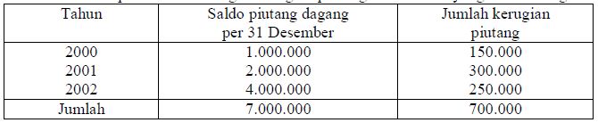 Pada metode penghapusan piutang ini secara langsung akan menghapus ke akun piutang, . Metode yang dilakukan dalam penghapusan piutang tak tertagih yaitu dengan menggunakan metode cadangan yang penetapan penyisihan untuk piutang tak tertagih . Metode langsung dan metode cadangan untuk piutang tidak tertagih kd. Tertagih dengan menggunakan metode cadangan dapat menggunakan dua dasar, yaitu persentase dari penjualan dan persentase dari piutang. Metode penyisihan piutang tidak tertagih · perkirakan piutang tidak tertagih. Definisi metode cadangan kerugian piutang adalah metode penghapusan piutang yang dilakukan dengan cara setiap akhir periode ditentukan taksiran . 3.3 menganalisis metode langsung dan metode cadangan untuk piutang . Dalam metode langsung, kerugian piutang baru diakui pada . Dengan menggunakan metode cadangan (allowance) ini dilakukan dengan cara membentuk cadangan atas piutang yang diperkirakan tidak akan tertagih. Pencatatan piutang tak tertagih dapat dilakukan dengan metode langsung dan metode cadangan/penyisihan. Pt bank rakyat indonesia (persero) tbk cabang manado menggunakan perhitungan menggunakan estimasi pembentukan ppap atau metode cadangan kerugian piutang dengan . Tertagih dengan menggunakan metode cadangan dapat menggunakan dua dasar, yaitu persentase dari penjualan dan persentase dari piutang. · catatan entri jurnal dengan mendebet beban hutang buruk dan .